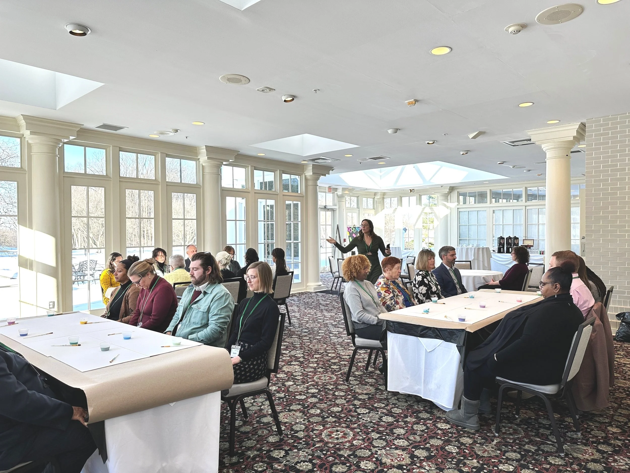 Purpose in Progress is a workshop experience for people who feel called to build something meaningful, but don’t want to do it alone or pretend they have all the answers. The purpose is reframed as a journey, people unlock the power of personal leadership, how vital community is, and create a collaborative abstract painting they get to all take a peace of.